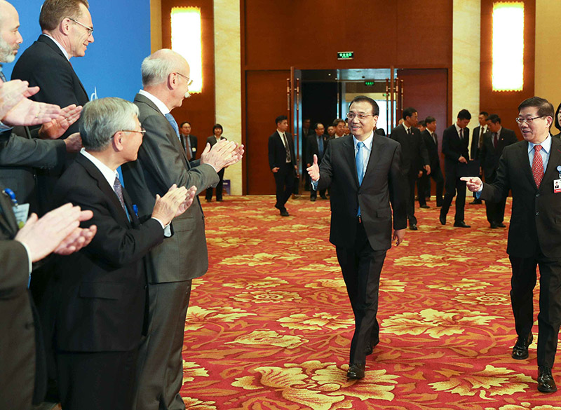 李克强总理3月26日下午同出席中国发展高层论坛2018年会的外方代表座谈。在回答日本日立株式会社社长中西宏明关于“中国制造2025”的提问时,李克强说,我们欢迎更多外国企业参与“中国制造2025”,尤其是在智能制造领域。“中国制造2025”始终会在开放中进行。中国要实现现代化,就必然发展高水平制造业,这个发展过程会是一个开放过程,需要世界先进企业与中国企业一起合作,中国企业也需要走出去与国外企业进行合作。只要是在中国注册的企业,不管是中企还是外企,在实施“中国制造2025”中,我们的政策都一视同仁。 |
